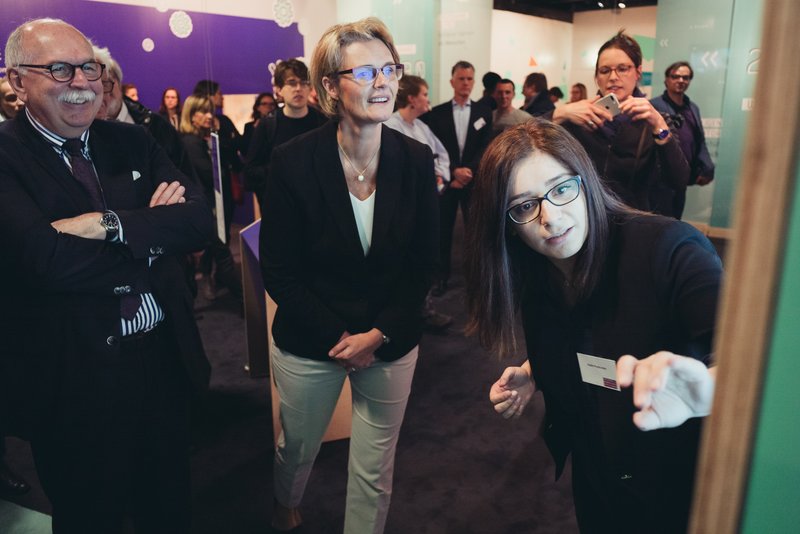 Bundesforschungsministerin Anja Karliczek (Mitte) hat sich natürlich auch die Ausstellung auf der MS Wissenschaft angesehen: